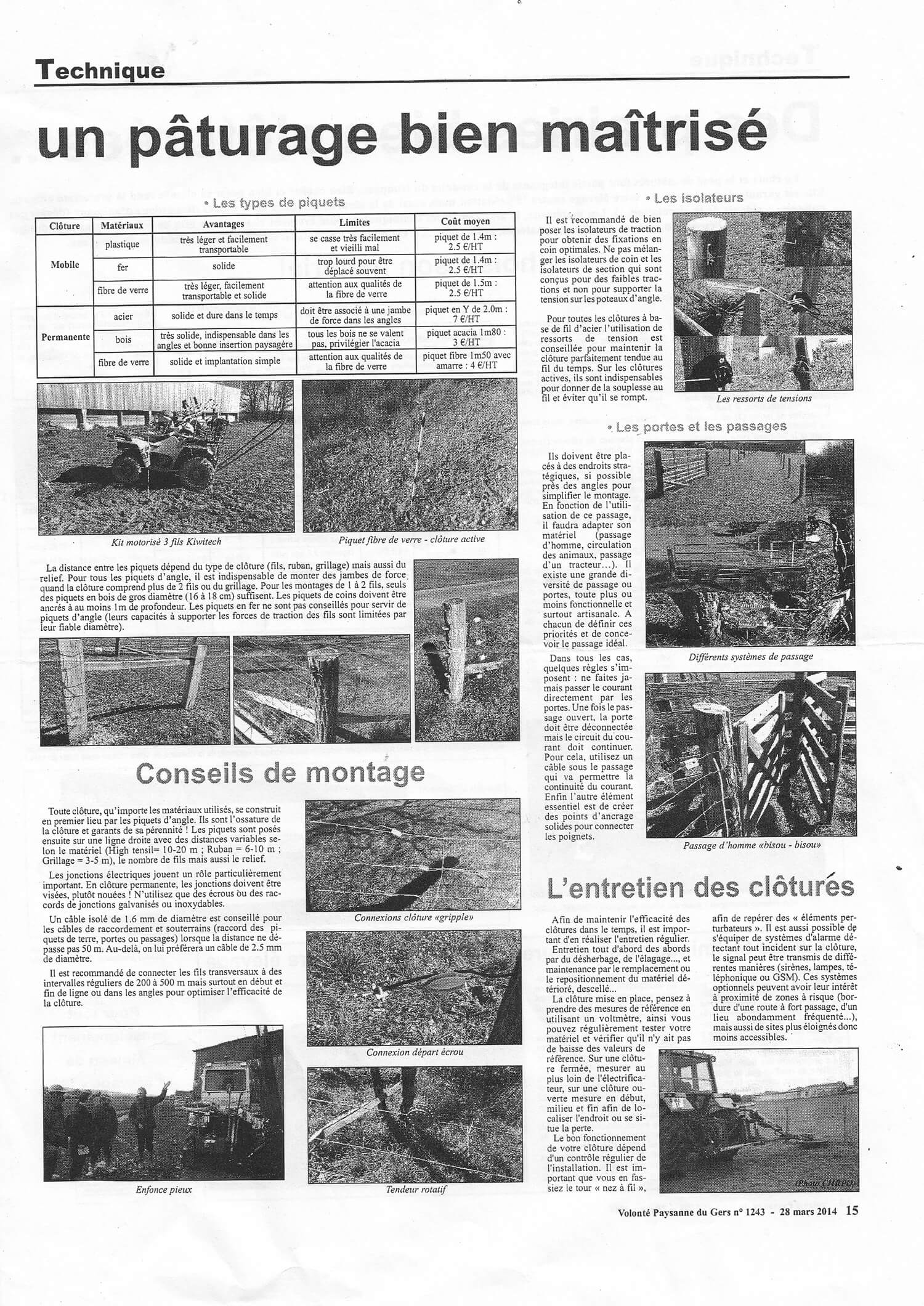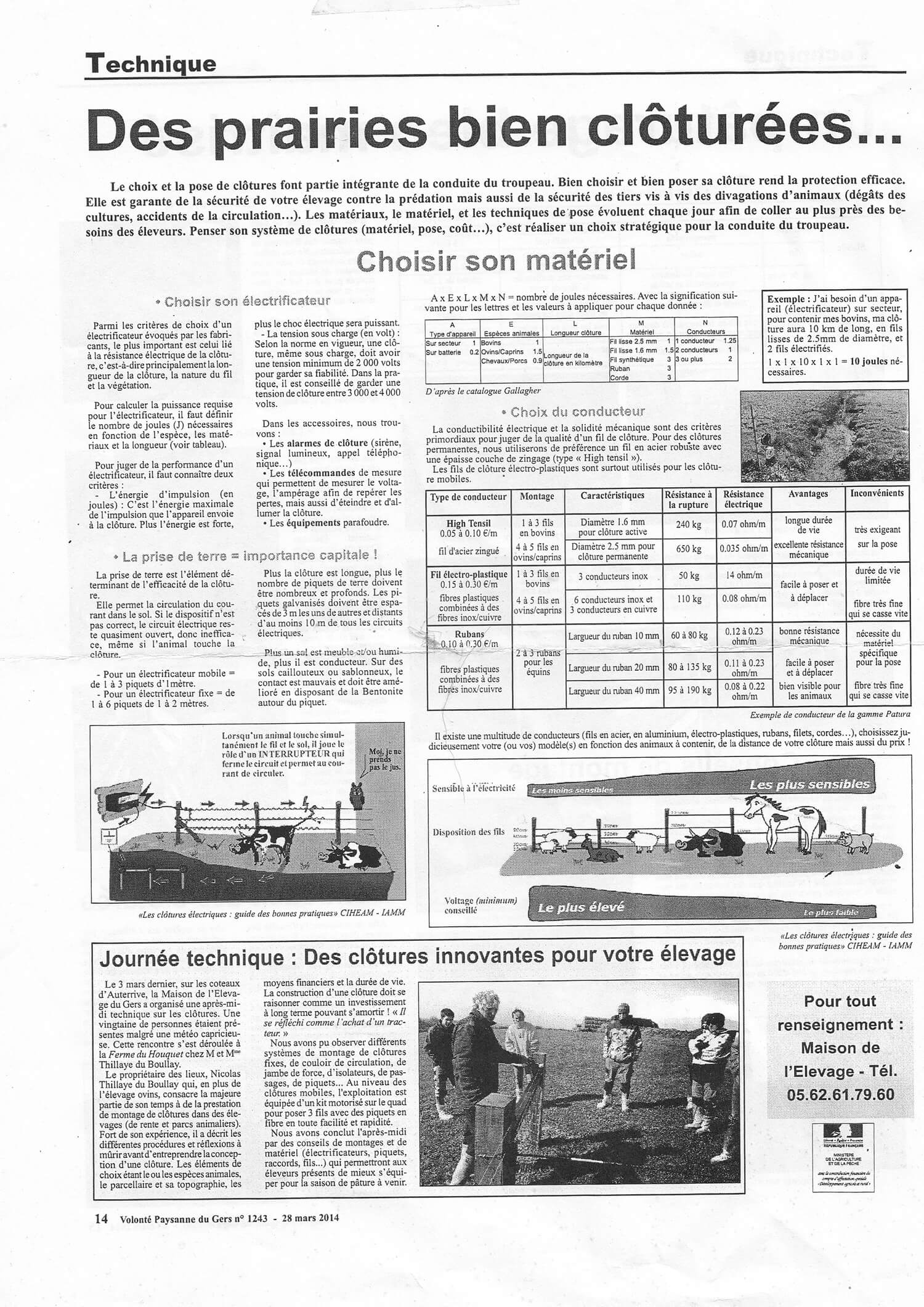Presse Bulletin Alliance Pastorale, Mars 2021 Volonté Paysanne du Gers, Mars 2014 Revue PLM, Mars 2001
